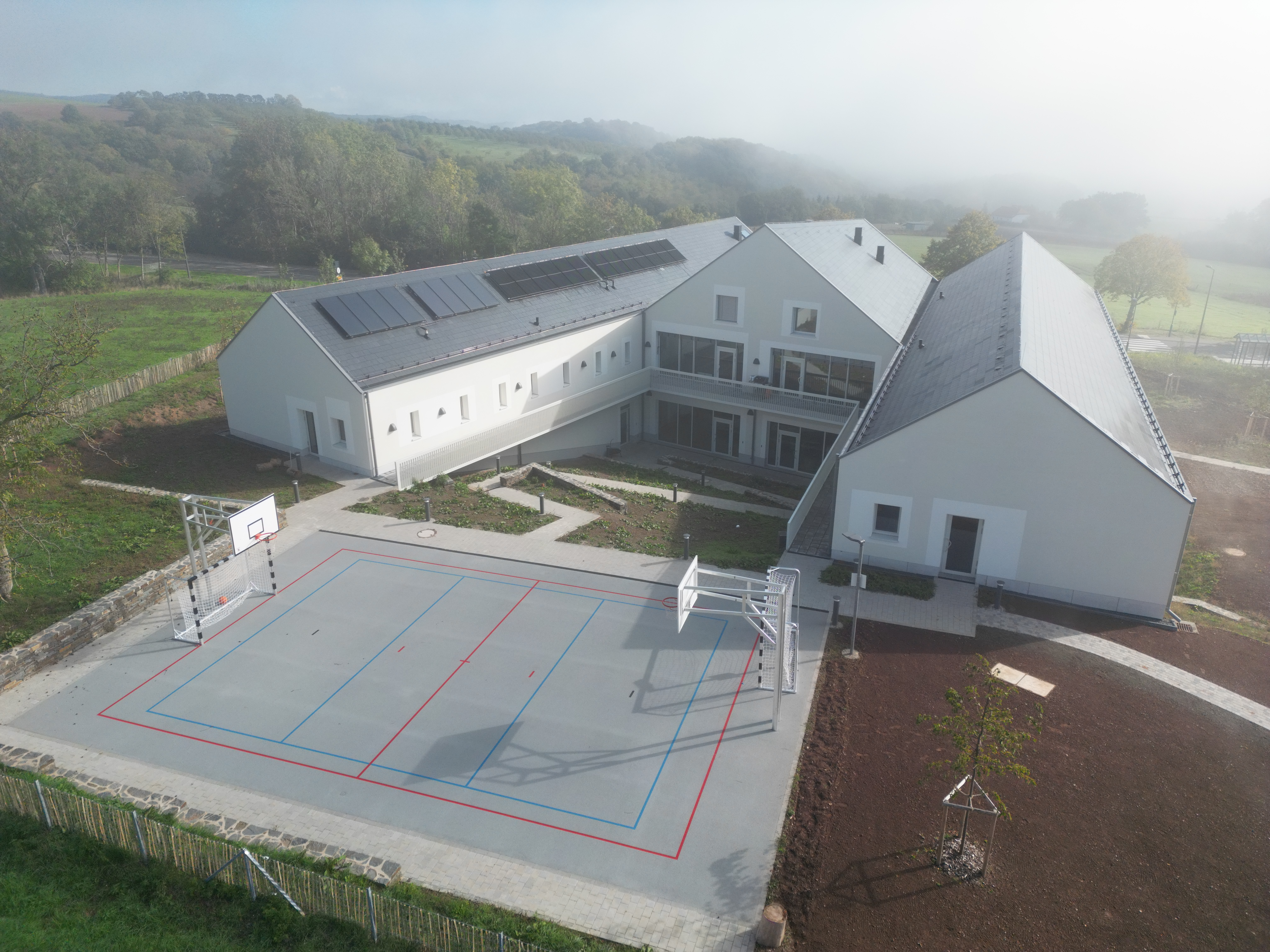 Au vu du nombre croissant d’élèves à accueillir, l’école actuelle devait se doter de nouvelles infrastructures pour les besoins scolaires et parascolaires. : Une extension, un nouveau foyer scolaire, un nouveau préau couvert et bien plus encore.