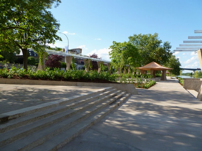 Réaménagement de l’Esplanade de Schengen d’une surface de +/- 5000 m2, intégrant respectivement une piste cyclable, des pavillons, des murs en béton armé et des espaces verts afin de lui donner un caractère plus urbain.