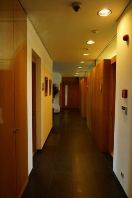 étages se situe dans un parc et a une longueur de 43 m sur une largeur de