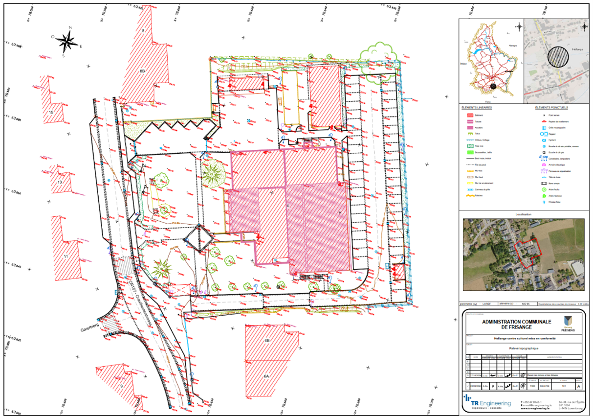 - Relevés topographiques aux alentours, voirie et infrastructures